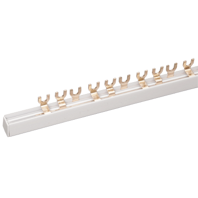 Применяются для удобного и безопасного соединения групп: ВА (выключатели автоматические), АД (автоматы дифференциальные), ВД (выключатели дифференциальные), ВН (выключатели нагрузки). Шины с шагом 18 мм предназначены для коммутации аппаратуры шириной, кратной одному модулю, шины с шагом 27 мм предназначены для коммутации изделий шириной, кратной полутора модулям. Шины, рассчитанные на номинальный ток 100 А, могут быть использованы с номинальным током 125 А, если вводной автомат подключать по центру. Для полуторамодульных шин имеются боковые заглушки.