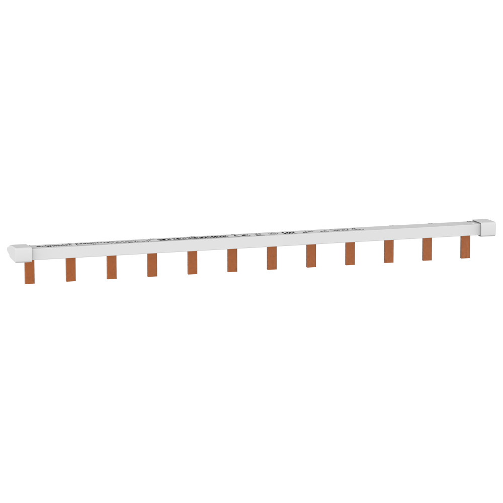 Гребенчатая шинка для аппаратов серии Easy9 Schneider Electric, однополюсная, 12 модулей по 18 мм, на номинальный ток 63 А, тип разъема - PIN (штырь), цвет - светло-серый.- Педназначена для распределения электропитания внутри распределительного щита.