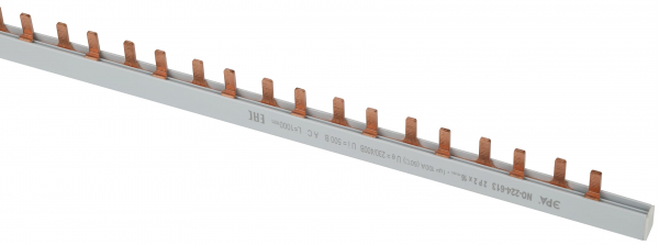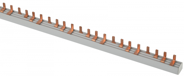 - Обеспечивает легкую и надежную сборку распределительного щита без использования кабельных перемычек. - Контактные зубцы расположены в соответствии с вводами подключаемых устройств. - Обеспечена идентификация контактов шин. - Могут быть разрезаны или распилены. - Поставляются с боковыми заглушками IP20, установка которых обязательна. - Неподключенные контактные зубцы могут быть изолированы защитными колпачками (аксессуар).