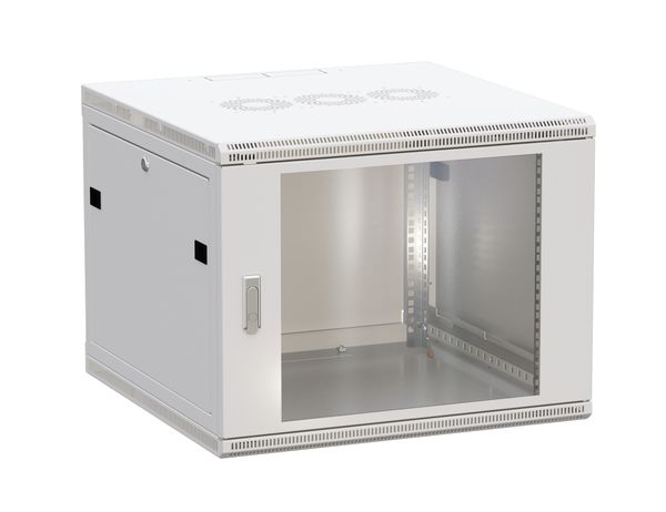 Шкаф настенный 19" TERACOM PRO 9U 600х600 мм дверь стеклянная с замком-ручкой серый