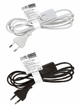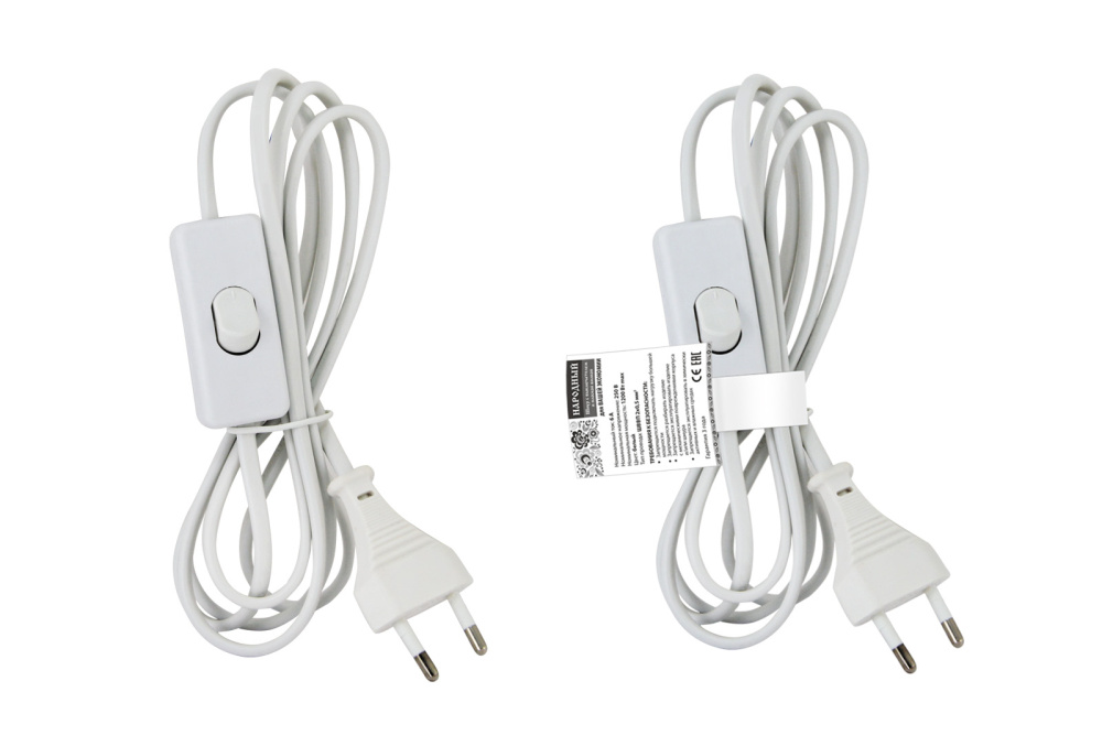 Шнур белый с выключателем и плоской вилкой ШВВП 2х0,5мм2 2м "Народный" TDM /1
