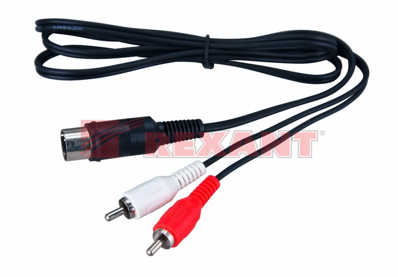 Шнур DIN 5 Pin - 2 RCA REXANT длиной 1,2 м предназначен для передачи аналогового аудиосигнала и используется с видео- и аудиосистемами любой сложности.С одной стороны шнура располагается штекер разъема DIN 5 Pin, а с другой - 2 штекера разъема RCA (традиционный стандарт для аналоговой видео и аудиотеxники).