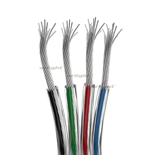 Шлейф для питания и управления RGB светодиодными лентами. 4 проводника, калибр проводника 20AWG, сечение проводника 0.52 мм², проводник из луженой меди, внешняя оболочка из прозрачного ПВХ. Длина кабеля в бухте — 50 метров.(...)Калибр проводника шлейфа питания и его сечение должны соответствовать нагрузке, смотрите инструкцию. Кратность заказа поставщику: 50 м.