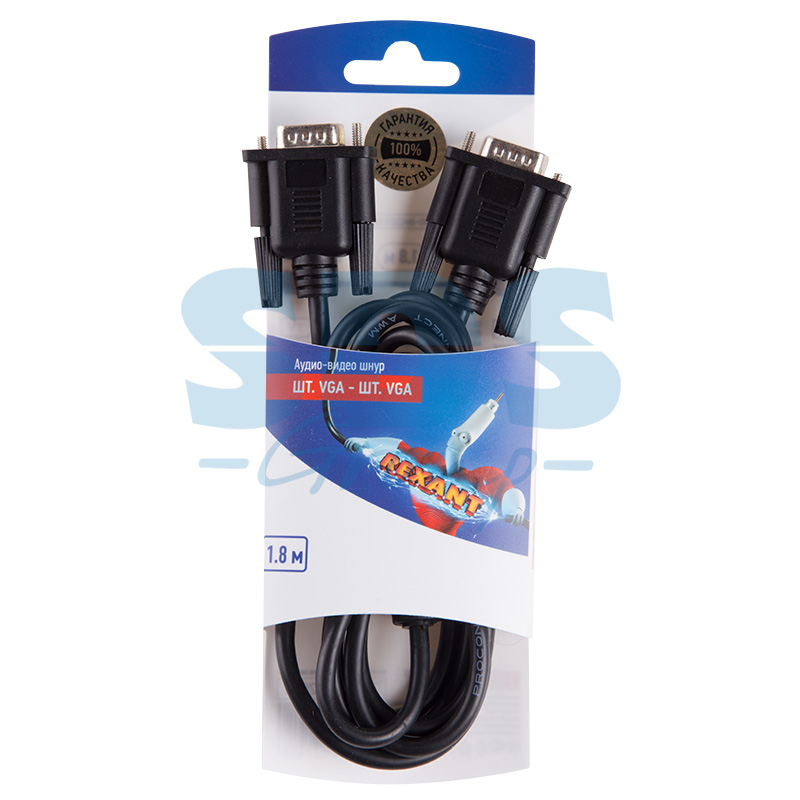 Шнур VGA plug - VGA plug REXANT предназначен для передачи аналогового видеосигнала. Применяется для совместной работы устройств, имеющиx разъемы VGA: компьютеры, ноутбуки, мониторы, плазменные и ЖК телевизоры, AV-ресиверы, проекторы и т. д.С обеиx сторон располагаются штекеры разъема VGA (англ. Video Graphics Array).