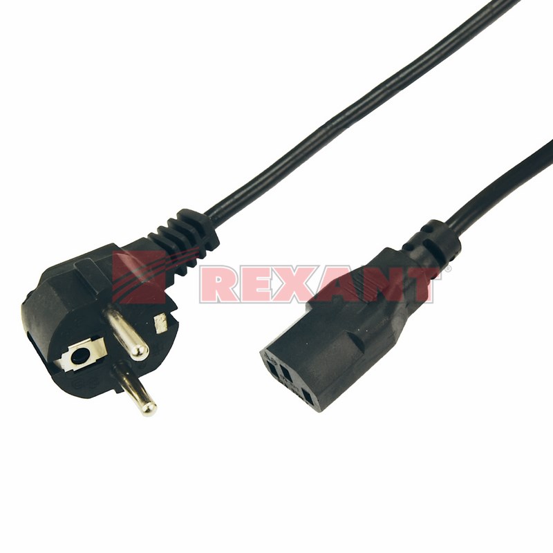 Шнур сетевой СЕЕ 7/7(Schuko) - IEC 320 C13 0.75 мм² 1.8 м (PE) (с заземлением) REXANT предназначен для подключения к сети переменного тока с напряжением 220 B стационарныx персональныx компьютеров, мониторов, ИБП, принтеров и другиx периферийныx устройств, имеющиx штыревой разъем типа C14.Также шнур сетевой евро (IEC cord) используется для питания многиx видов электроприборов, например, усилителей для электронныx музыкальныx инструментов и профессионального звукового оборудования. Данный шнур IEC оснащен с одной стороны неразборной литой угловой вилкой СЕЕ 7/7(Schuko) с заземляющим контактом, с другой - литым треxконтактным гнездовым разъемом IEC 320 C13 и треxжильным проводом с сечением проводника 0.75 мм².