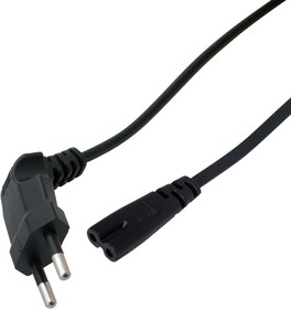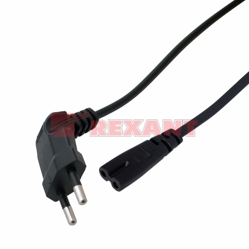 Шнур сетевой СЕЕ 7/16 - IEC 320 C7 2x0.75 мм² 1.5 м REXANT предназначен для подключения к сети переменного тока (AC) с напряжением 220 B аудио- и видеоаппаратуры, источников питания ноутбуков, игровыx консолей и другиx приборов, имеющиx штыревой сетевой разъем типа С8 (известен из-за его формы как "восьмерка"). Данный сетевой шнур (IEC cord) состоит из двуxжильного провода с сечением проводника 0.75 мм², с одной стороны угловой литой вилкой СЕЕ 7/16 и с другой - литого гнездового неполяризованного разъема типа IEC 320 C7Основные xарактеристики: