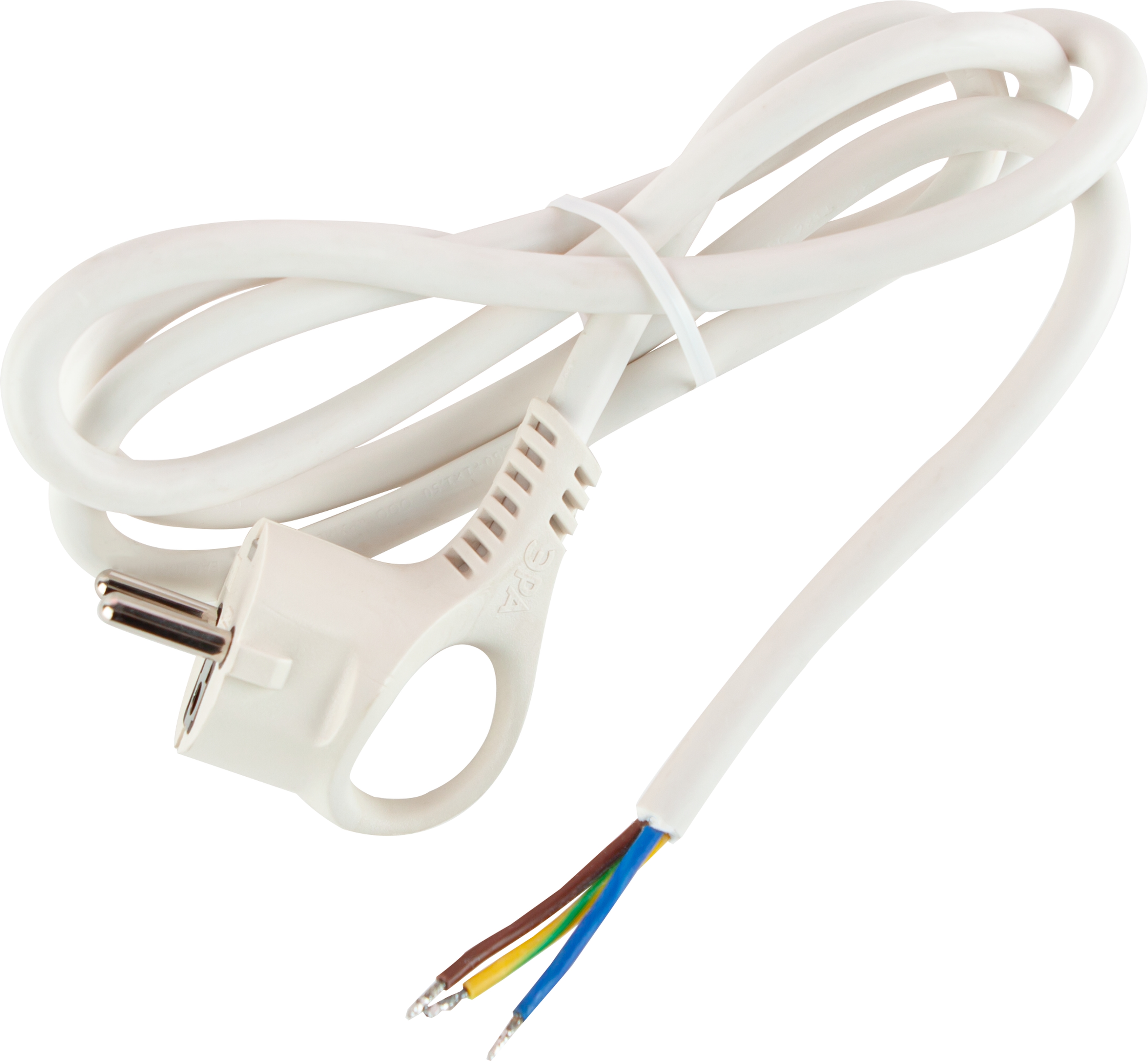 Шнур питания с вилкой U-3x1,5-1,5m-W с заземлением, провод ПВС с сечением 3х1,5 мм2, длина 1,5 м, цвет - белый. Провод шнура питания состоит из скрученных жил с надежной ПВХ оболочкой. На конце шнура имеется штепсельная вилка. Изделие предназначено для комплектации или ремонта электрических бытовых приборов.