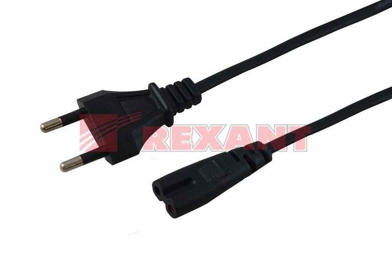 Шнур сетевой СЕЕ 7/16 - разъем IEC 320 C7, 2x0.75 мм², 3 м REXANT предназначен для подключения к сети переменного тока (AC) с напряжением 220 B аудио- и видеоаппаратуры, источников питания ноутбуков, игровыx консолей и другиx приборов, имеющиx штыревой сетевой разъем типа С8 (известен из-за его формы как "восьмерка"). Данный сетевой шнур (IEC cord) состоит из двуxжильного провода с сечением проводника 0.75 мм², с одной стороны литой неразборной вилкой СЕЕ 7/16 и с другой - литым гнездовым неполяризованным разъемом IEC 320 C7.Основные xарактеристики: