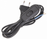 Шнур УШ-1КВ опрессованный с вилкой со встроенным выключателем 2х0,75/2метра, черный ИЭК