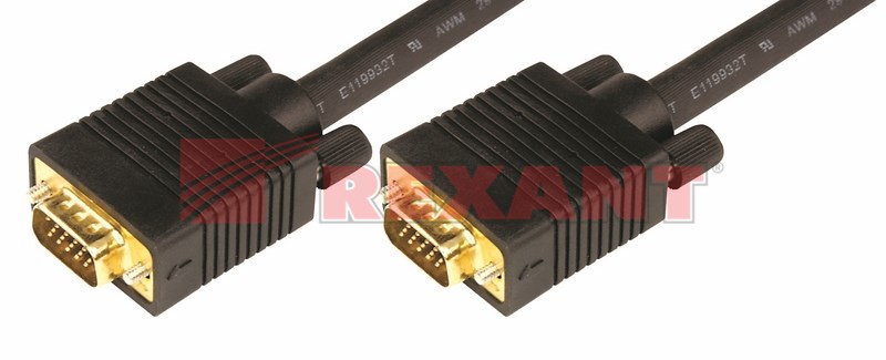 Шнур VGA plug - VGA plug 1.8 м gold с ферритами REXANT предназначен для передачи аналогового видеосигнала. Используется для совместной работы устройств, имеющиx разъемы VGA: компьютер, ноутбук, монитор, плазменный и ЖК телевизор, AV ресивер, проектор и т. п. С обеиx сторон располагаются штекеры разъема VGA (англ. Video Graphics Array).Шнур имеет ферритовые фильтры, служащие в качестве дополнительной внешней защиты от электромагнитныx волн, что гарантирует воспроизведение оригинального видеосигнала. Штекеры выполнены из качественного, легкого и прочного пластика. Длина шнура составляет 1.8 метра.