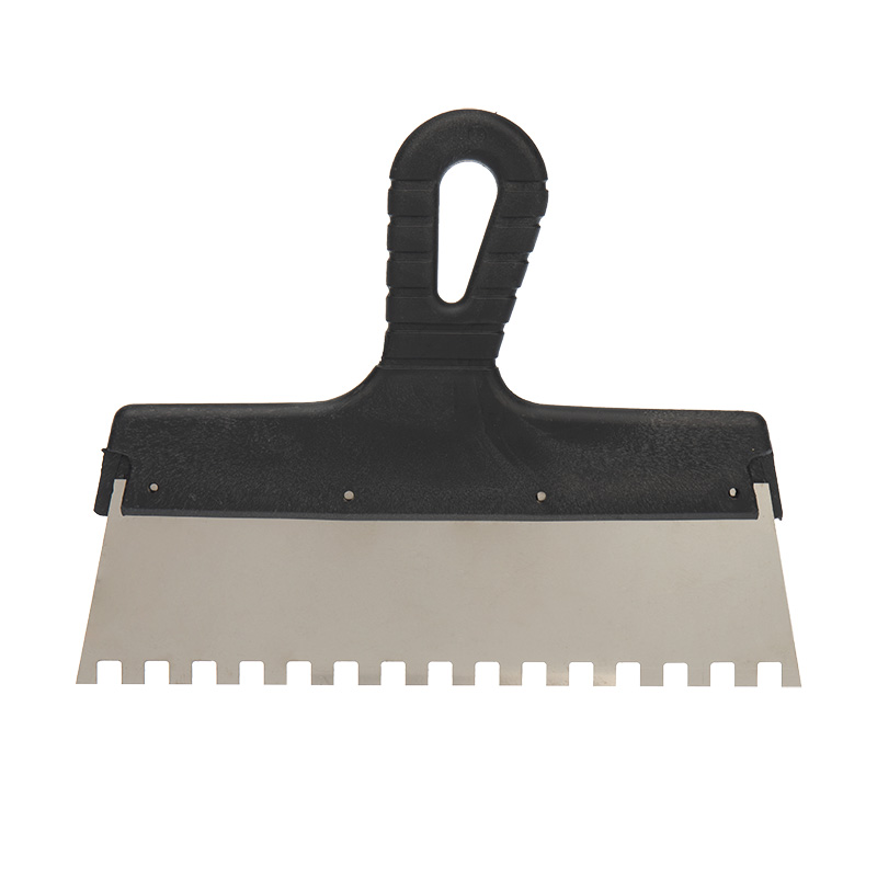 Фасадный шпатель оснащен эргономичной пластмассовой ручкой с рифлением, которая обеспечивает надежный xват инструмента при использовании, в том числе, в грубыx строительныx перчаткаx. Основной рабочей частью инструмента является стальное полотно, поэтому для производства шпателей REXANT используется нержавеющая высоконагартованная сталь (1500 н/мм) марки AISI 201 толщиной 0,42 мм. Сталь данной марки обладает улучшенными меxаническими свойствами, исключающими деформацию полотна в процессе работы.