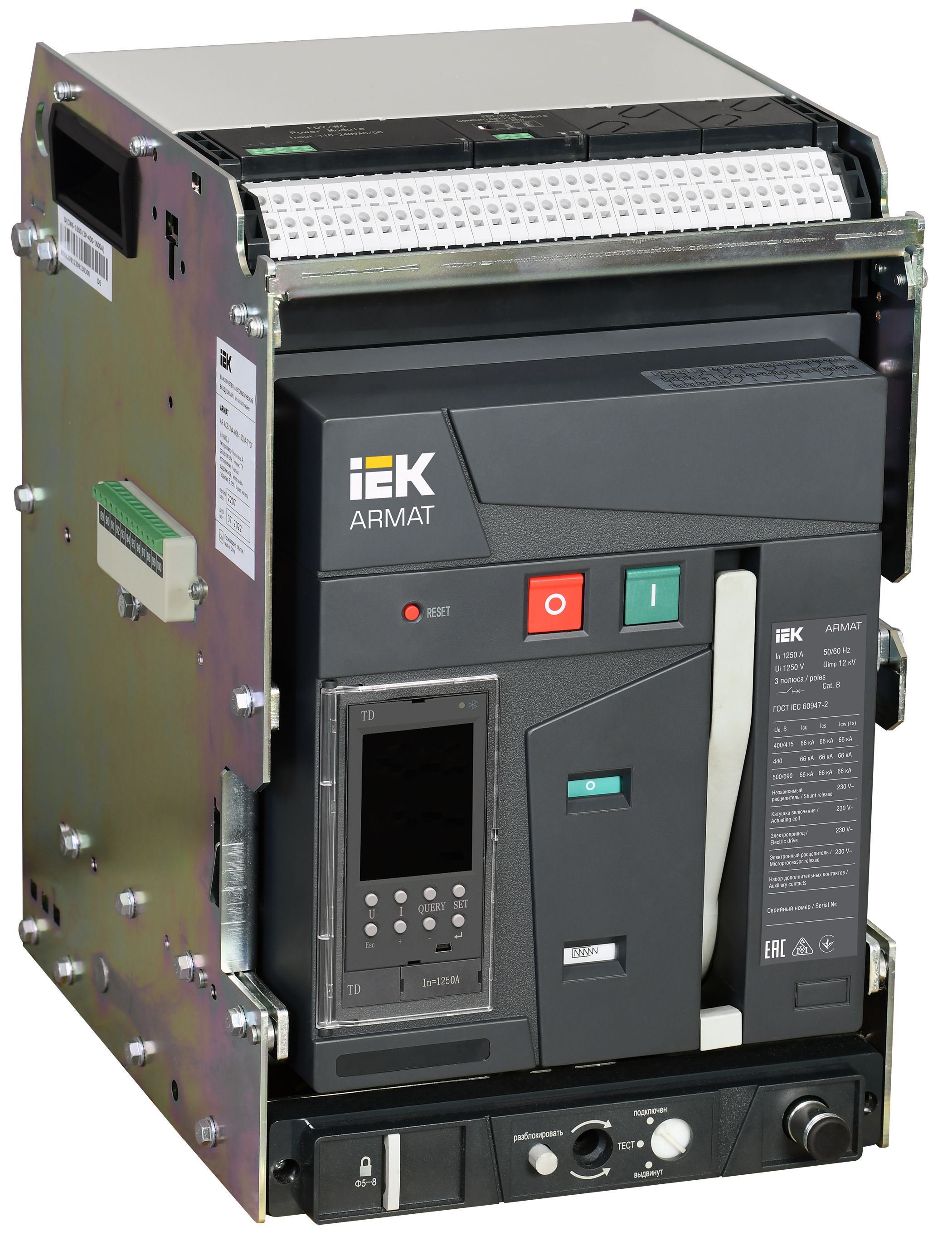 Силовой автомат. выкл. 3P Iu=1250А уставка тока расцеп.:500А 66кА 0НЗ 0НО IP30 с расцепит. Umin, с встр. моторн. приводом IEK
