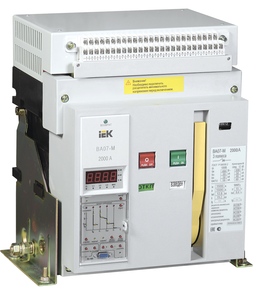 Силовой автомат. выкл. 3P Iu=2000А 80кА IP30 с расцепит. Umin, с встр. моторн. приводом IEK