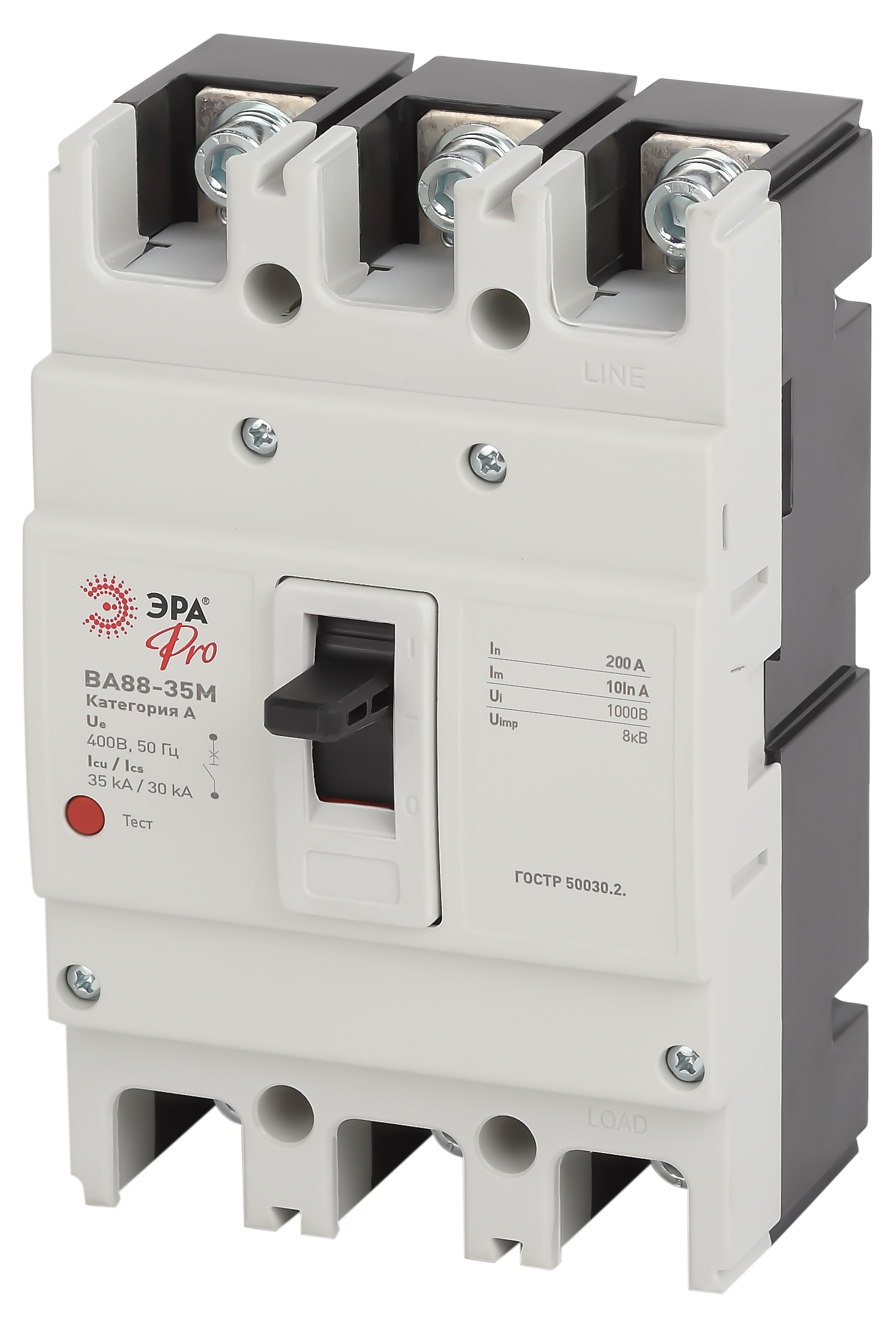 Силовой автомат. выкл. 3P Iu=200А уставка тока расцеп.:200А 35кА 0НЗ 0НО IP30 с расцепит. Umin, ЭРА
