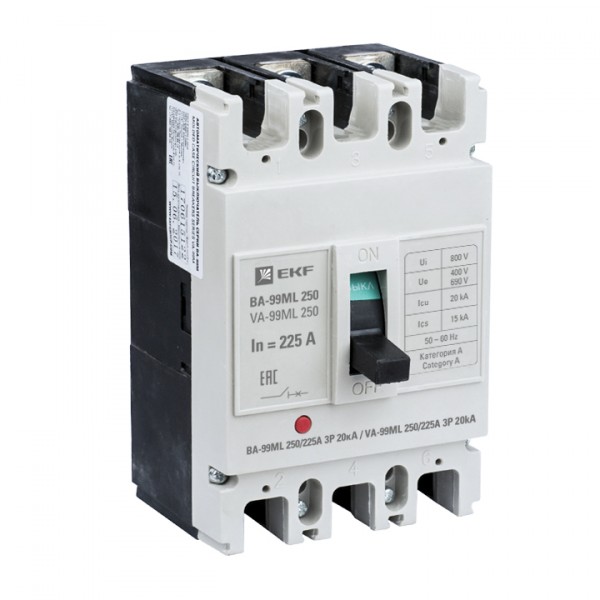 Силовой автомат. выкл. 3P Iu=225А уставка тока расцеп.:225А 20кА 0НЗ 0НО IP30 EKF
