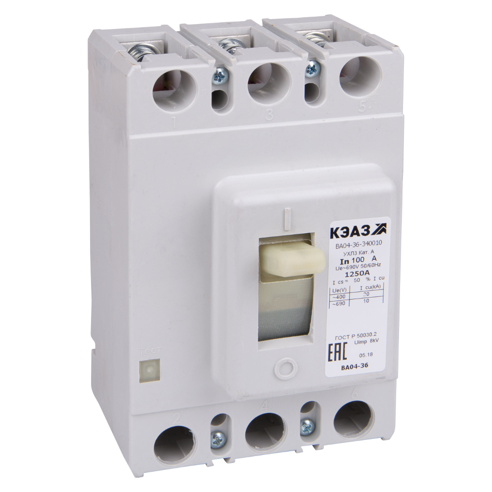 Силовой автомат. выкл. 3P Iu=250А уставка тока расцеп.:250А 20кА 0НЗ 0НО IP20 КЭАЗ
