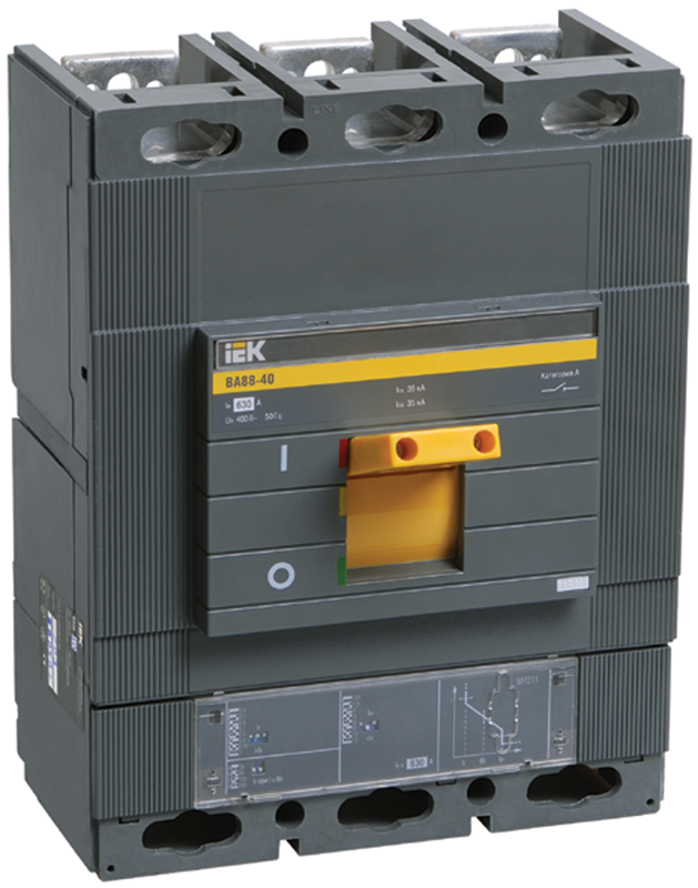 Автоматические выключатели ВА88 предназначены для проведения тока в нормальном режиме и отключения тока при коротких замыканиях, перегрузке, недопустимых снижениях напряжения, а также для оперативных включений и отключений участков электрических цепей и рассчитаны для эксплуатации в электроустановках с номинальным рабочим напряжением до 400 В и на номинальные токи от 12,5 до 1600 А.Соответствуют требованиям ГОСТ Р 50030.2.Автоматические выключатели с электронным расцепителем обеспечивают защиту от перегрузки и короткого замыкания с помощью электронного расцепителя сверхтоков. Это позволяет обеспечить высокую надежность, точность срабатывания и независимость от окружающих условий.Электронный расцепитель не требует отдельного питания и гарантирует правильную работу защиты при токе нагрузки не менее 15% от номинального даже при наличии напряжения только в одной фазе. Блок защиты включает в себя три трансформатора тока, электронный модуль и отключающий электромагнит, который воздействует непосредственно на механизм выключателя. Трансформаторы тока, установленные внутри корпуса расцепителя, обеспечивают электропитание электронной схемы расцепителя и вырабатывают сигналы, необходимые для выполнения функции защиты. Защитные характеристики (уставки срабатывания) выбираются потребителем непосредственно на передней панели выключателя установкой DIP-переключателей согласно приведенной мнемосхеме.Благодаря широкому диапазону регулирования уставок электронный расцепитель МР211 пригоден для всех распределительных сетей, в которых требуется надёжность и точность срабатывания.Сделано в России.