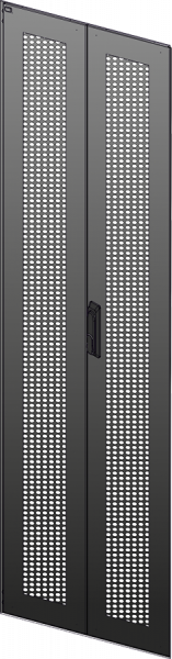Дверь перфорированная двустворчатая предназначена для установки в напольные 19" шкафы серии LINEA N.Дверь легкосъемная с трёхточечным запиранием (38U-47U) и поворотной ручкой.