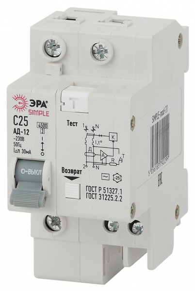 SIMPLE-mod-39 ЭРА SIMPLE Автоматический выключатель дифференциального тока 3P+N 40А 30мА тип АС х-ка