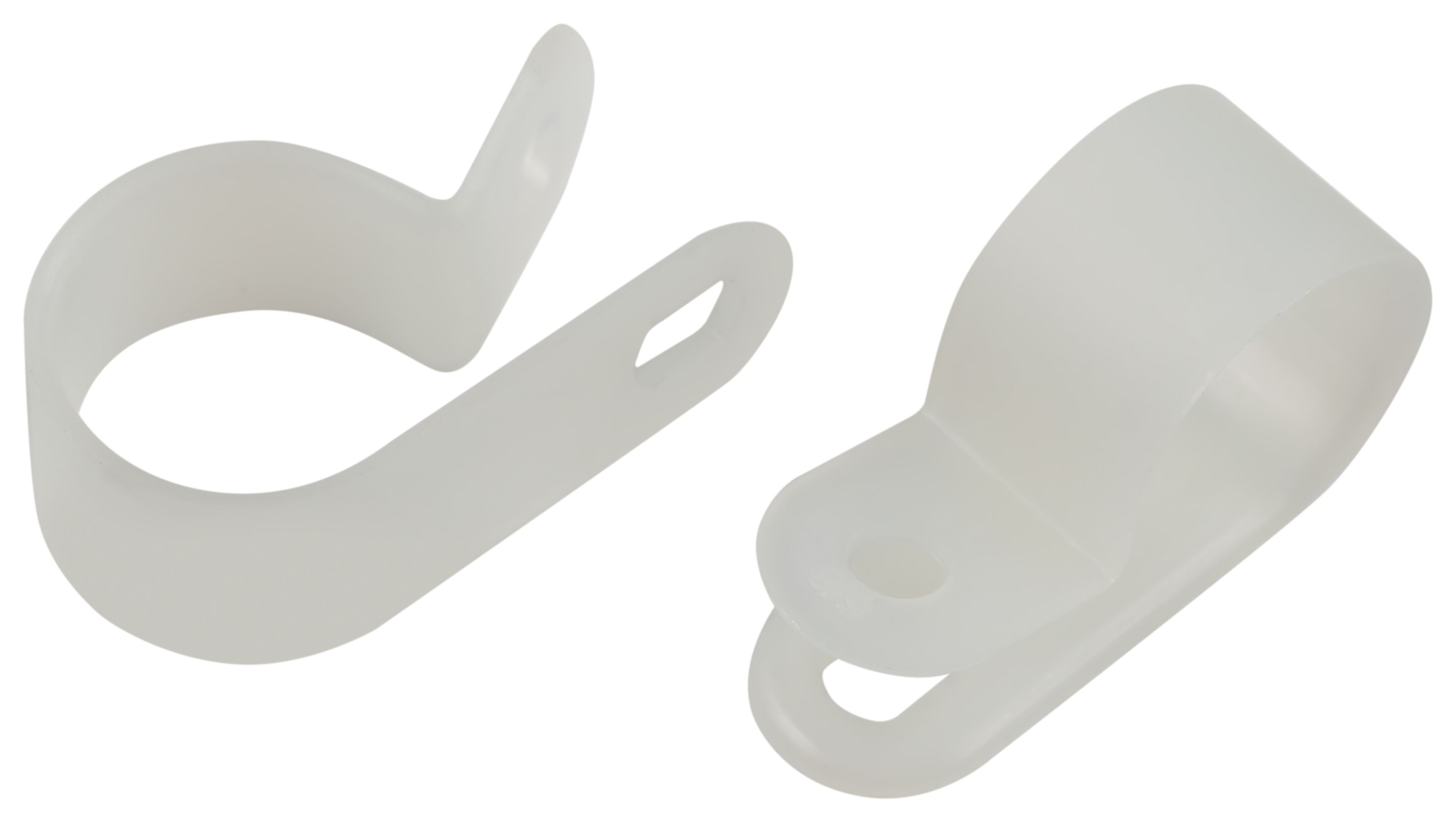 - Легкие и прочные нейлоновые скобы обеспечивают надежное крепление на любые поверхности и исключают повреждение проводников.