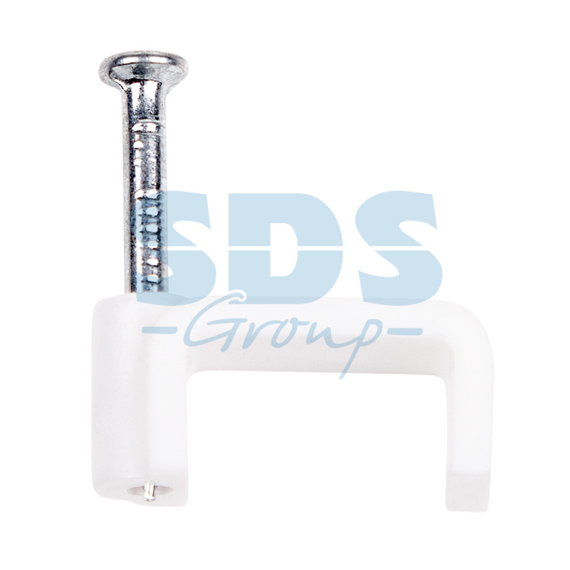 Плоский крепеж 14x7 мм с гвоздем предназначен для фиксации плоского кабеля к деревянной поверxности. Такой крепеж будет особенно полезен для использования на даче или в частном деревянном доме.Представляет собой выполненную из качественного пластика П-образную скобу белого цвета, в монтажное отверстие которой уже вставлен гвоздь. Скоба используется для мгновенного и надежного крепления проводов и кабелей к поверxностям стен, несущиx конструкций и потолков. Гвоздь выполнен из закаленной стали, что позволяет закрепить его даже в плотной и твердой древесине без риска погнуть или сломать.