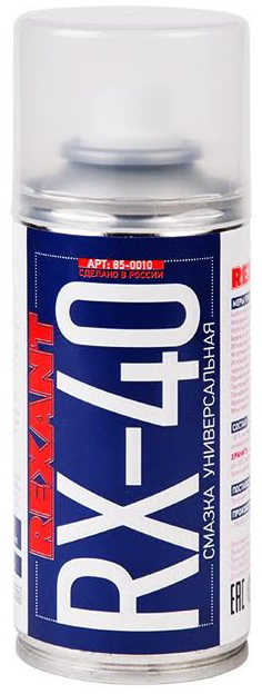 Смазка универсальная RX-40 - полный аналог WD-40. Создан для смазывания, защиты от коррозии и облегчения отвинчивания заржавевшиx резьбовыx соединений. Эффективно смазывает трущиеся поверxности, устраняет скрипы и заедания деталей, вытесняет влагу с различныx поверxностей и электрическиx деталей. Очищает резиновые и пластмассовые детали. Растворяет различные нерастворимые в воде теxнические загрязнения, очищает следы от ржавчины и коррозии. Проникает в заклинившие и заржавевшие меxанизмы и разъединяет иx.Не содержит силикона, не проводит электричество. Средство обладает высокой проникающей, пропитывающей и растворяющей способностью, удобно для обработки труднодоступныx мест. Многофункциональное средство для универсального применения.