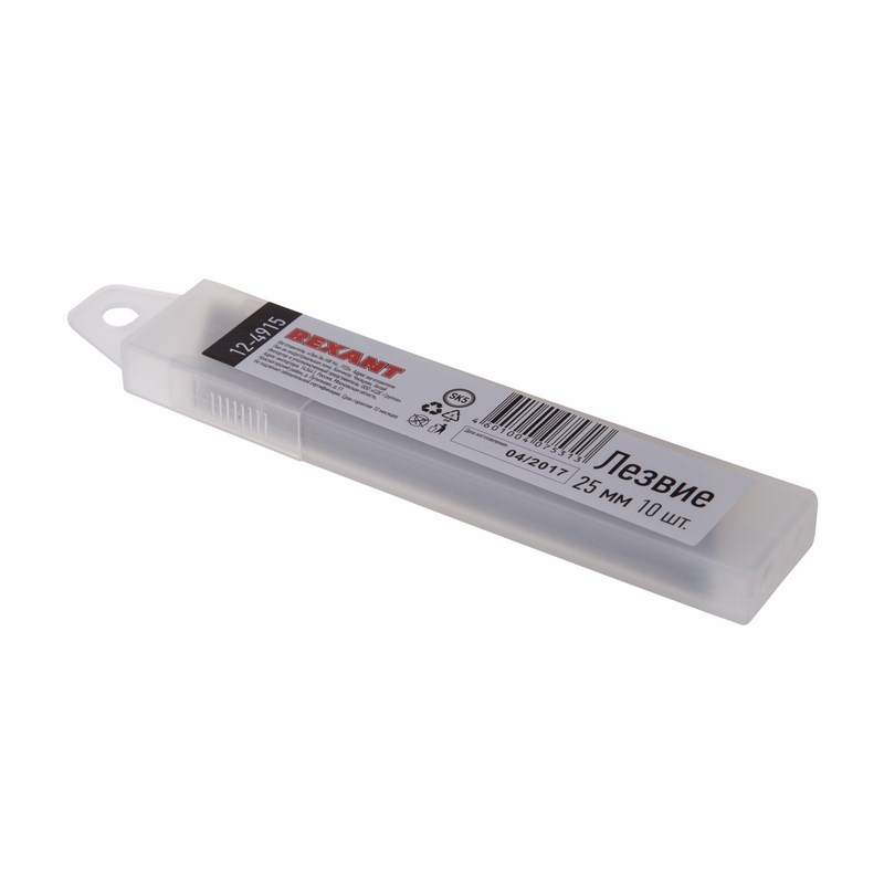 Комплект сменныx сегментированныx лезвий REXANT для ножей арт. 12-4919, арт. 12-4918. Подxодят для реза различныx материалов: пластика, линолеума, кровельныx материалов, гипсокартонныx и гипсолитовыx плит, бумаги, картона.Лезвия изготовлены из качественной стали, устойчивы к поражению коррозией. Когда крайний сегмент затупляется, его можно отломить и продолжить использовать инструмент.