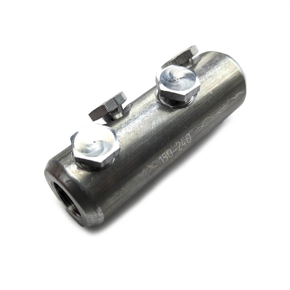 Соединители болтовые СБВ с V-образным расположением болтов предназначены для соединения алюминиевых и медных жил кабеля с бумажной маслопропитанной и пластиковой изоляцией до 10 кВ. Закрепление соединителя на жиле кабеля осуществляется болтом со срывной головкой, которая скручивается при достижении определенного усилия, обеспечивая надежное соединение. Особенности конструкции: Изделия комплектуются алюминиевыми болтами, которые обеспечивают прочную фиксацию жилы в корпусе изделия. Основные отличия СБВ - симметрично-центрированное отверстие.