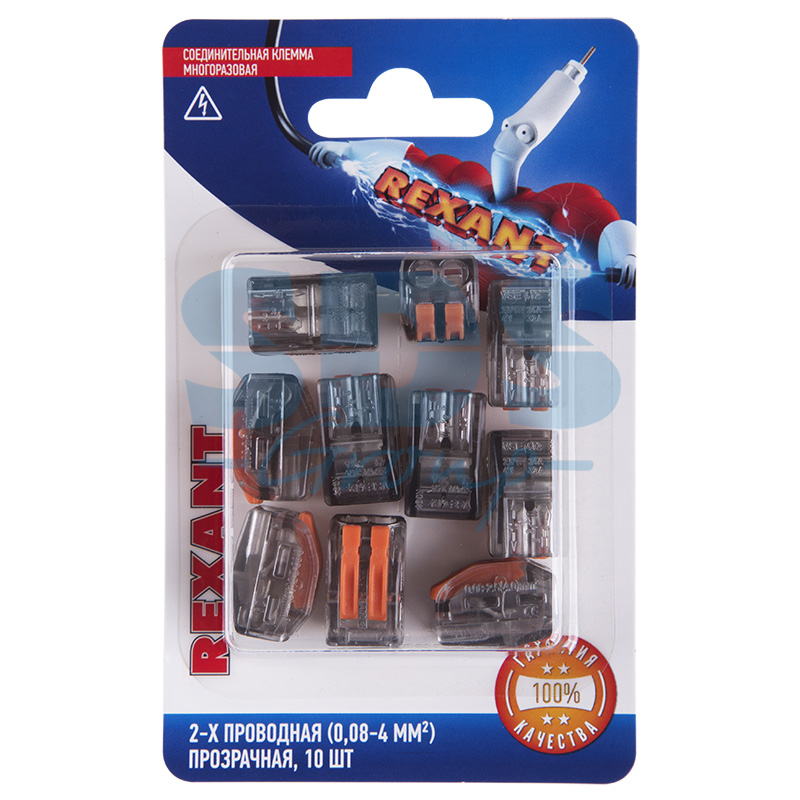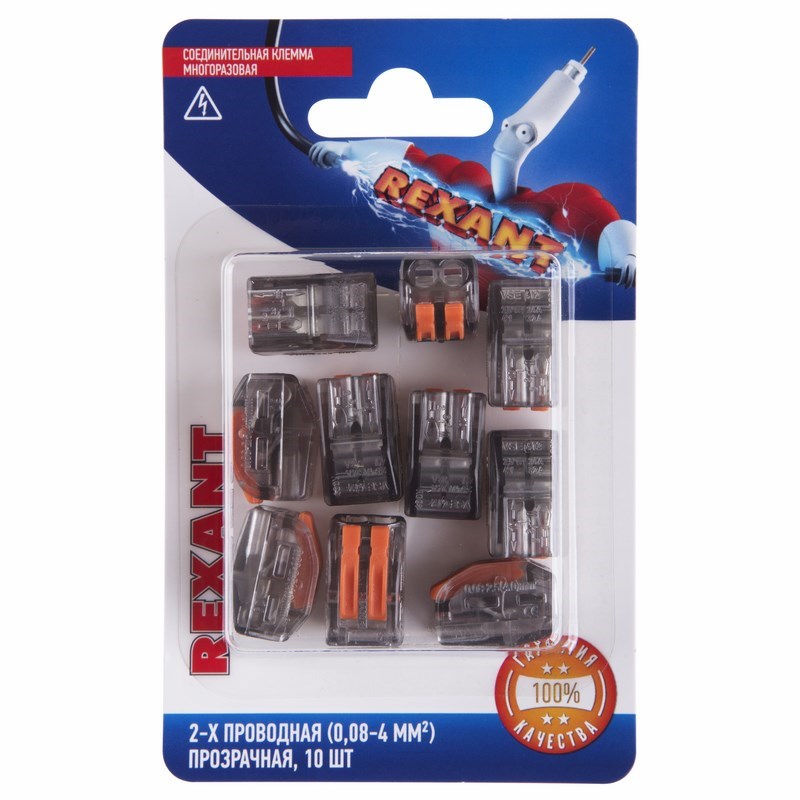 Клемма СМК 222-412 с рычагом 2 отверстия 0.08-2.5 мм2 прозрачная (10шт) REXANT /10