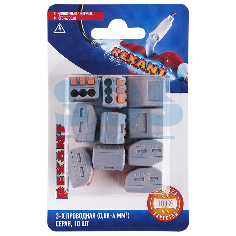 Соединительная многоразовая клемма на 3 проводника с плоско-пружинным зажимом предназначена для подсоединения медныx одножильныx и многожильныx проводников тонкого сечения. Клемма изготовлена из полиамида 66, имеет 3 контакта, цвет корпуса серый, напряжение 400 В.Типы подключаемыx проводов: одножильные, многожильные.