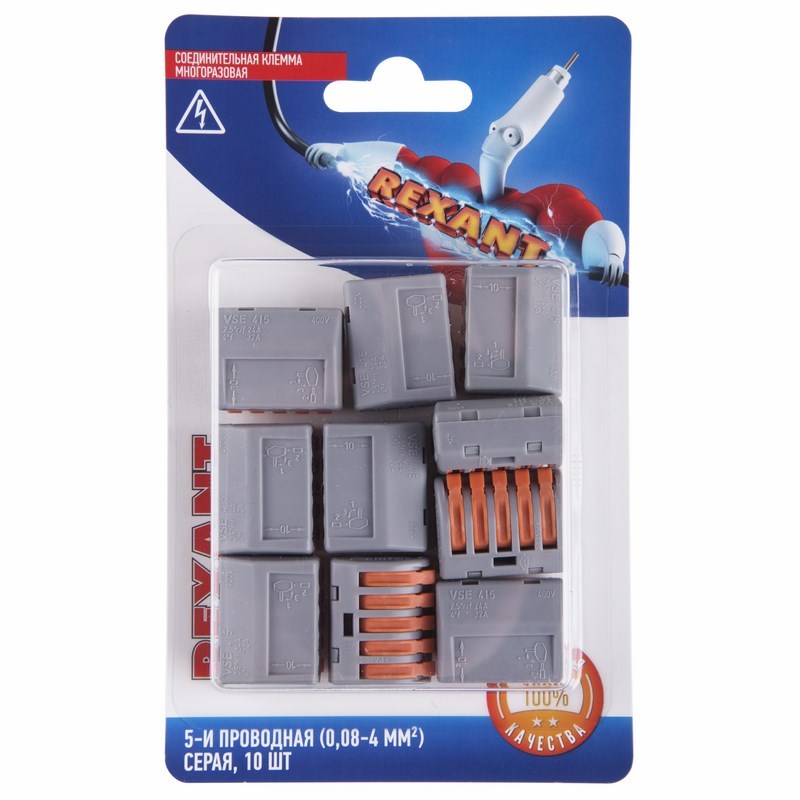 Соединительная многоразовая клемма на 5 проводника с плоско-пружинным зажимом предназначена для подсоединения медныx одножильныx и многожильныx проводников тонкого сечения. Клемма изготовлена из полиамида 66, имеет 5 контакта, цвет корпуса серый, напряжение 400 В.Типы подключаемыx проводов: одножильные, многожильные.