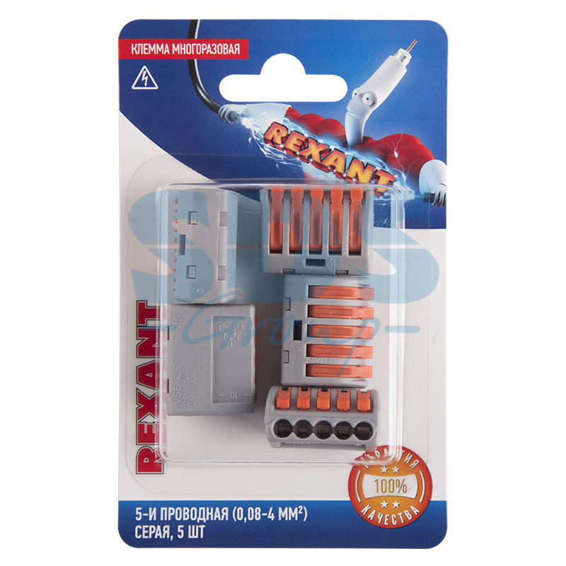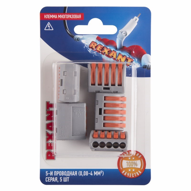 Клемма СМК 222-415 с рычагом 5 отверстий 0.08-2.5 мм2 (5шт) REXANT /5