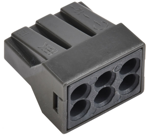 Электромонтажные экспресс-клеммы предназначены для соединения 6 проводов между собой (алюминиевые и медные как одножильные, так и многожильные). Подключение осуществляется способом проталкивания до упора очищенного от изоляции провода в свободное гнездо. Клеммы наполнены специальной контактной пастой, которая создает барьер для попадания влаги внутрь разъёма, а так же препятствует окислению проводников. Клемма имеет 6 контакта, напряжение 400 В, Максимальным током 24А,Поддерживаемое сечение: от 1,0 до 2,5 мм2.