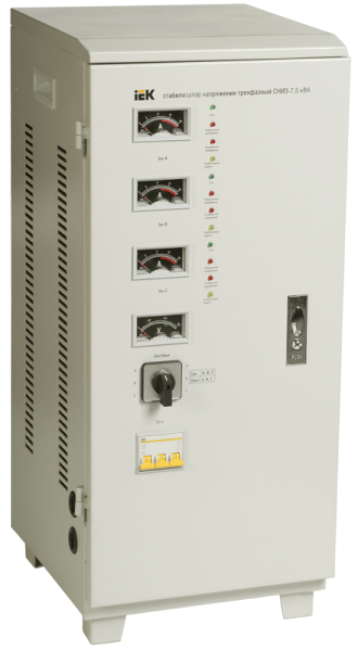 Стабилизатор напряжения электромеханический 3-фаз. 7500ВА предельно допустимое линейное- 250В 3% IEK _