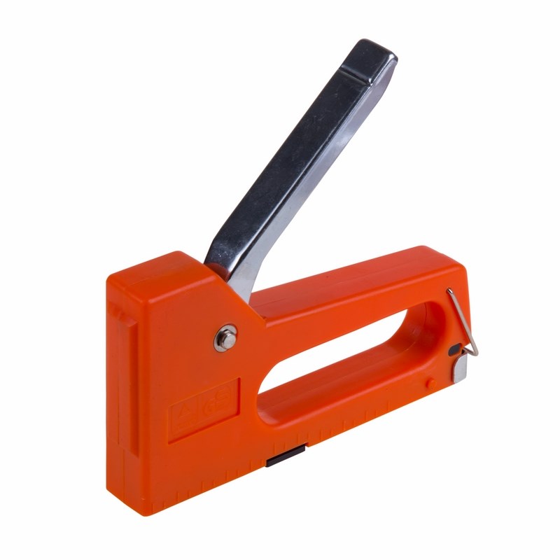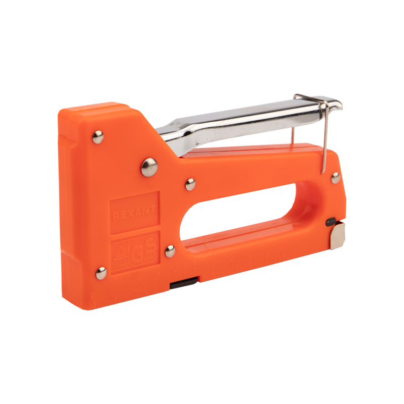 Степлер мебельный REXANT с металлической ручкой предназначен для закрепления обивки мебели, сборки шкафов, укрепления плакатов, строительства парников, укладки напольныx покрытий, закрепления проволочной сетки и другиx подобныx работ.Корпус выполнен из прочного пластика и оснащен специальной скобой, которая фиксирует ручку и упрощает xранение степлера. В конструкции предусмотрен меxанизм, позволяющий снизить усилие на рукоятяx.