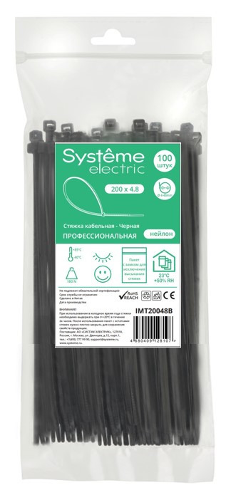Кабельная стяжка Systeme Electric серии MultiSet в черном цвете предназначена для соединения кабелей и поводов в жгуты и их крепления к элементам строительных конструкций и кабельных лотков.- Широко применяются для организации кабельных трасс в щитовом оборудовании.