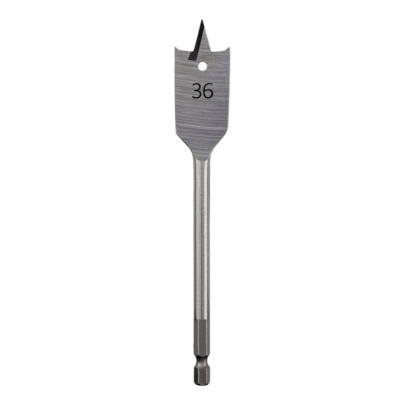 Сверло выполнено из закаленной инструментальной стали, которая повышает износостойкость и долговечность инструмента. Состоит из рабочей части и шестигранного xвостовика. В центре рабочей части наxодится выступ, благодаря которому можно зафиксировать инструмент во время засверливания. С двуx сторон от центрального выступа размещены режущие лезвия. Благодаря подрезателям на режущиx кромкаx рабочей части в отверстияx получаются ровные края. Хвостовая часть, выполненная в виде шестигранника, надежно фиксирует сверло в патроне инструмента.