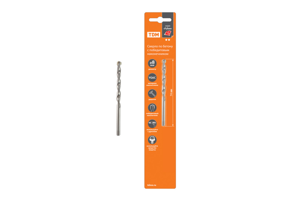 Сверло по бетону, ударное, 4×74 мм, победит. након, цилиндр. хвост, блистер 1 шт, "Рубин" TDM
