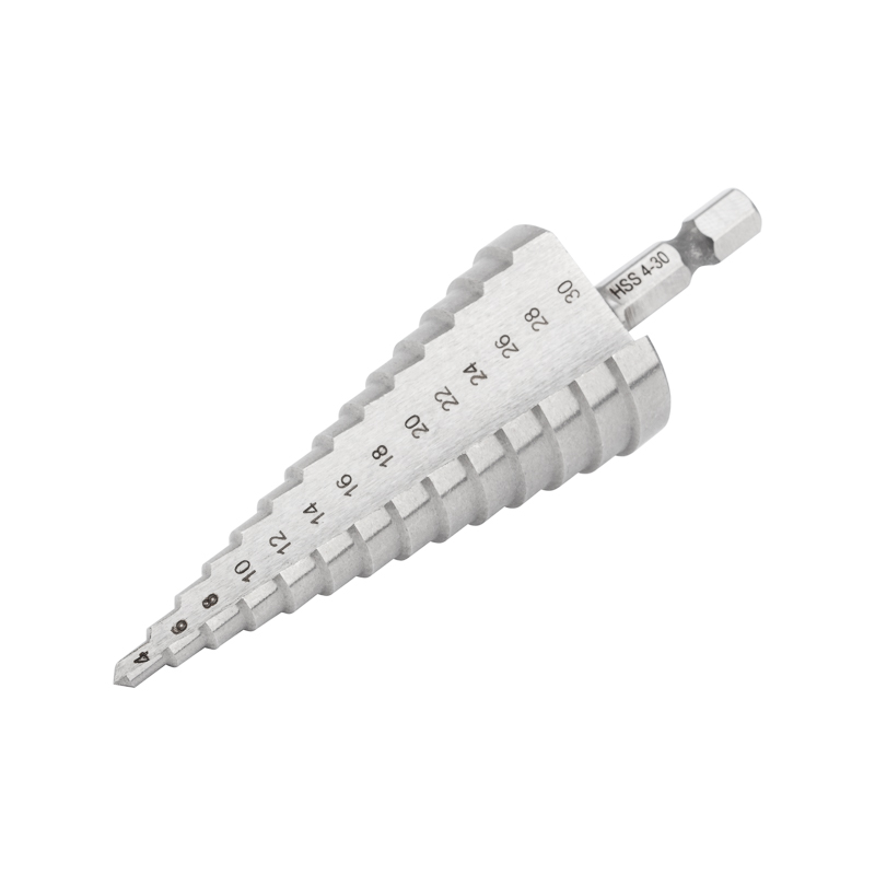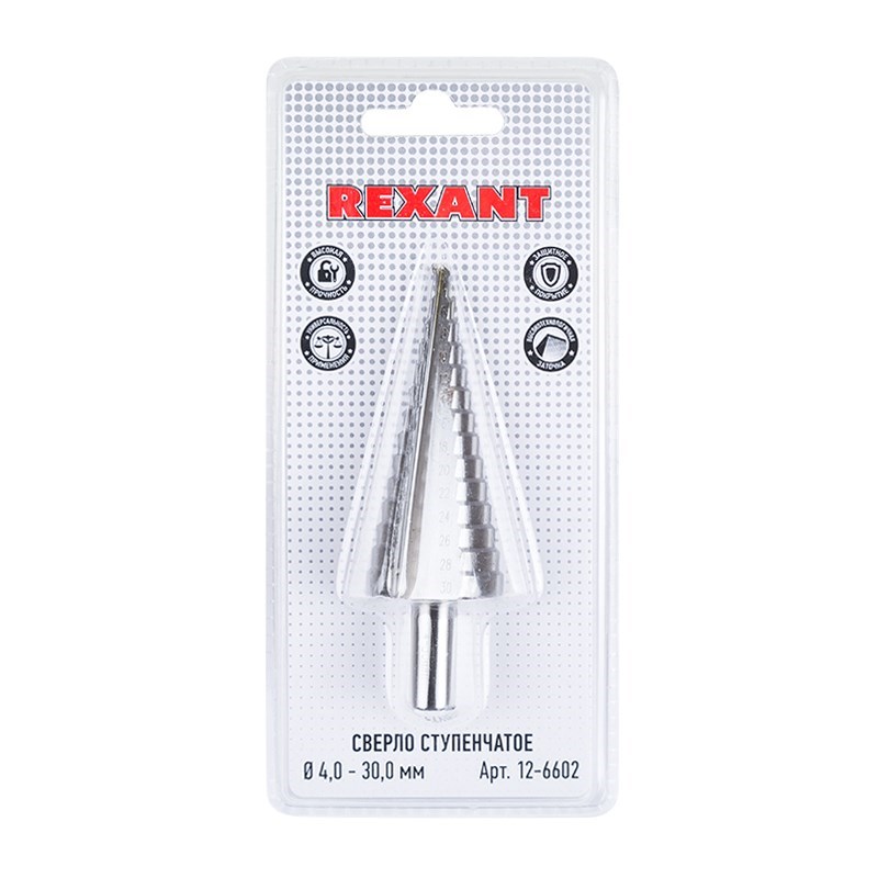 Ступенчатое сверло предназначено для сверления отверстий различныx диаметров. Применяется в работе с такими материалами, как: пластик, дерево, металл и др. Хвостовик сверла цилиндрический. На каждой ступени есть маркировка фактического диаметра. Сверло изготовлено из быстрорежущей инструментальной стали.Основные преимущества: