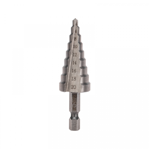 Ступенчатое сверло предназначено для получения отверстий различного диаметра без перестановки режущего инструмента. Применяется в работе с такими материалами, как пластик, дерево, металл и др. Хвостовик прибора имеет форму конуса. На каждой ступени есть маркировка фактического диаметра. Сверло изготовлено из быстрорежущей инструментальной стали.Основные преимущества: