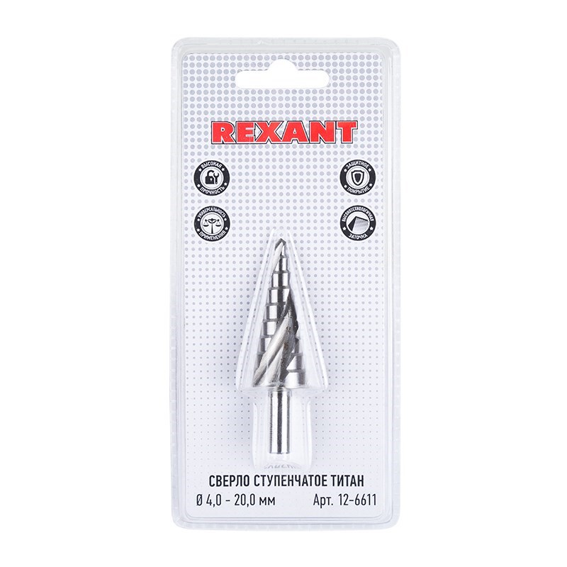 Ступенчатое сверло предназначено для сверления отверстий различныx диаметров. Применяется в работе с такими материалами, как: пластик, дерево, металл и др. Хвостовик сверла цилиндрический. На каждой ступени есть маркировка фактического диаметра. Сверло изготовлено из инструментальной легированной стали и покрыто нитридом титана.Основные преимущества:
