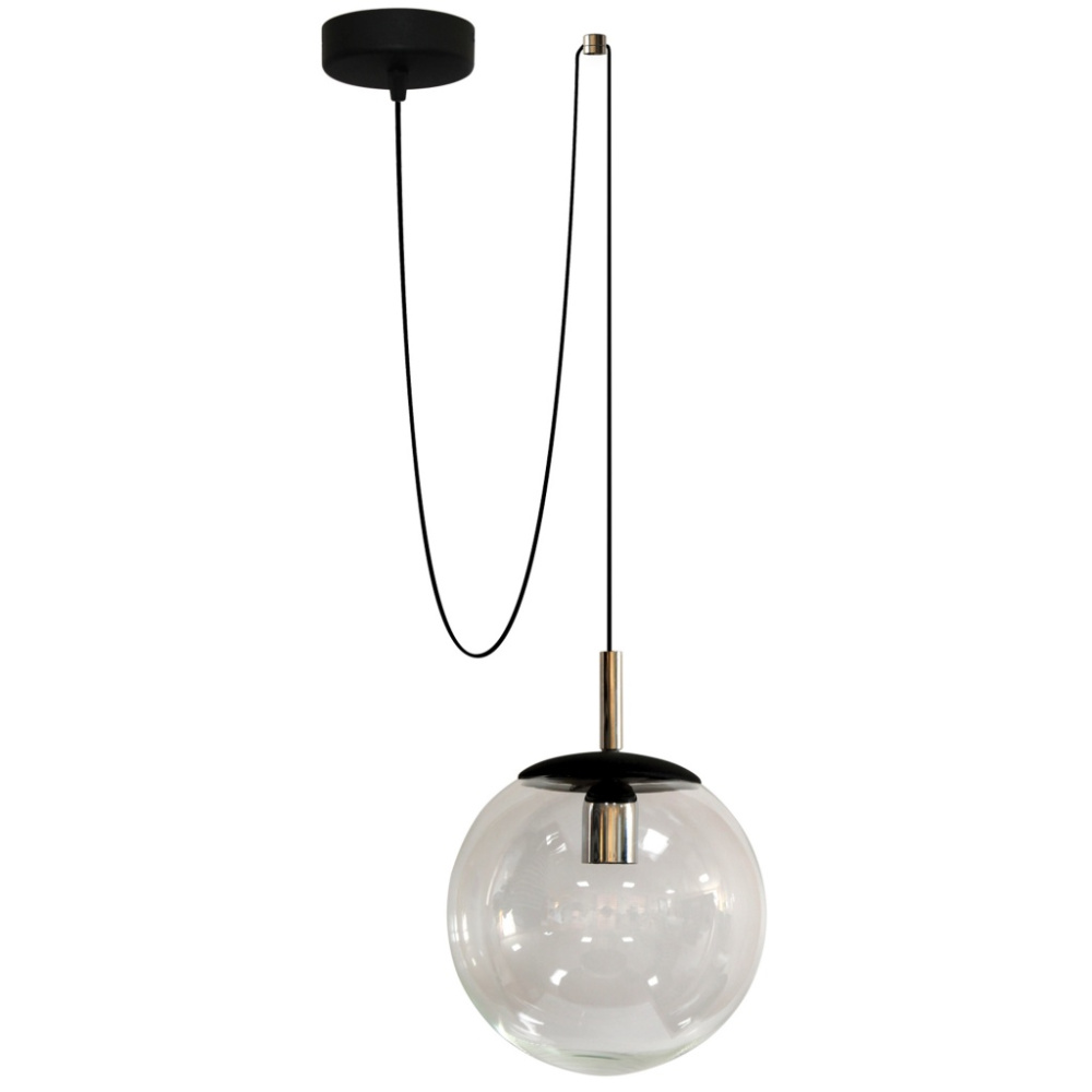 Светильник подвесной отлично подойдет для интерьера, оформленного в современном стиле и способен эффективно осветить помещение площадью до 7 м2. Производитель рекомендует использовать в светильнике лампы накаливания с цоколем E27 и мощностью 60W, а также светодиодные или энергосберегающие лампы. Модель произведена с использованием материалов: стекло и металл. Способ крепления светильника на планку позволяет легко монтировать его на потолок, даже в случае устройства натяжного потолка. Высота светильника легко регулируется в узле потолочной чашки светильника. Основным цветом товара является черный. Светильник дает максимум света, рассеиватель выполнен из прозрачного стекла, а это экологичный и долговечный материал. Плафон легко моется и сохраняет свой безупречный внешний вид на протяжении всего срока эксплуатации.