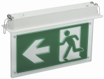 Используются для обозначения эвакуационных выходов, а также для различных информационных целей в помещениях с высоким уровнем содержания влаги и пыли. Знаки сменные. Встраивается в потолки типа Армстронг.