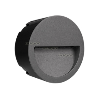 Светодиодный встраиваемый круглый светильник для стен, лестниц, 4Вт. Цвет ТЕПЛЫЙ БЕЛЫЙ 3000K, св.поток 220лм, CRI(Ra)>80, угол 65°, асимметричный свет. Размер Ф115x37мм (закладная часть Ø109x55мм). Влагозащищенный корпус IP65, алюминий серого цвета. Питание AC230V, 4Вт, встроенный драйвер.