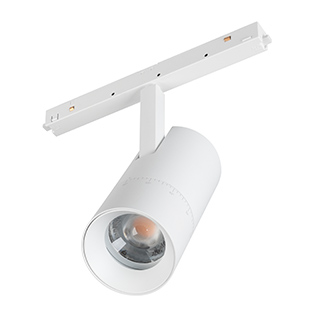 Светильник для магнитных треков MAG-ORIENT шириной 26 мм, с управлением по DALI. Мощность 15 Вт, св. поток 1100 лм, 73 лм/Вт, теплый 3000 K, CRI>90, угол 34-60°, напряжение питания 48 В. Белый фигурный корпус из металл, экран поликарбонат, степень защиты IP20. Размеры LxWxH 204x66x211 мм.Длина светоизлучающего модуля 145мм. Монтаж на трек MAG-ORIENT. Изменяемый угол светового потока, шаг регулировки 1 градус.