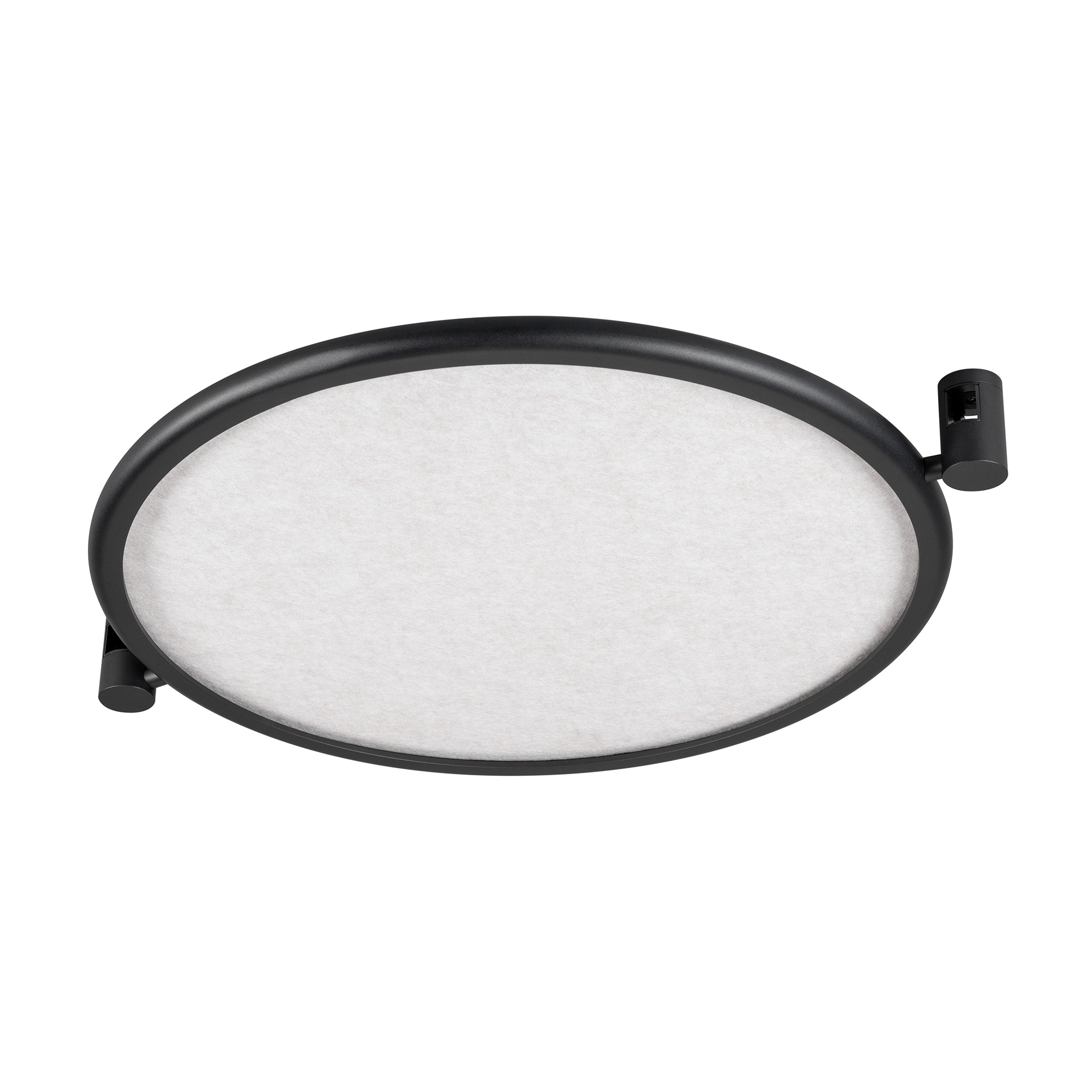 Светильник поворотный для треков APRIORI шириной 17 мм. Мощность 20 Вт, св. поток 491 лм, 23 лм/Вт., дневной 4000 K, CRI>90, угол 160°, напряжение питания 48 В. Черный круглый корпус из алюминия с бежевым акустическим материалом, степень защиты IP20. Размер: длина 620 мм, ширина 580 мм, высота 55 мм. Монтаж на трек APRIORI 17 мм. Угол поворота корпуса 350°.Пульсация <0,04%. Возможно диммирование по ШИМ (PWM) или не адресное управление при использовании диммируемого драйвера Dali, 0-10V, TRIAC.