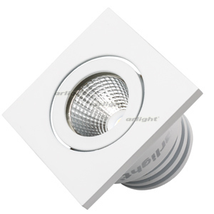 Врезной квадратный мебельный светильник 5Вт, корпус белый алюминий. Цвет БЕЛЫЙ 6000K. Светодиод 1х5W Bridgelux. CRI>80, Св.поток 350-400лм, наклоняемая ось, угол 25°. Питание 180-240VAC, 5Вт, 400mA 11-13V, драйвер в комплекте. Размеры 50x50x50 мм, врезное отверстие d42 мм.