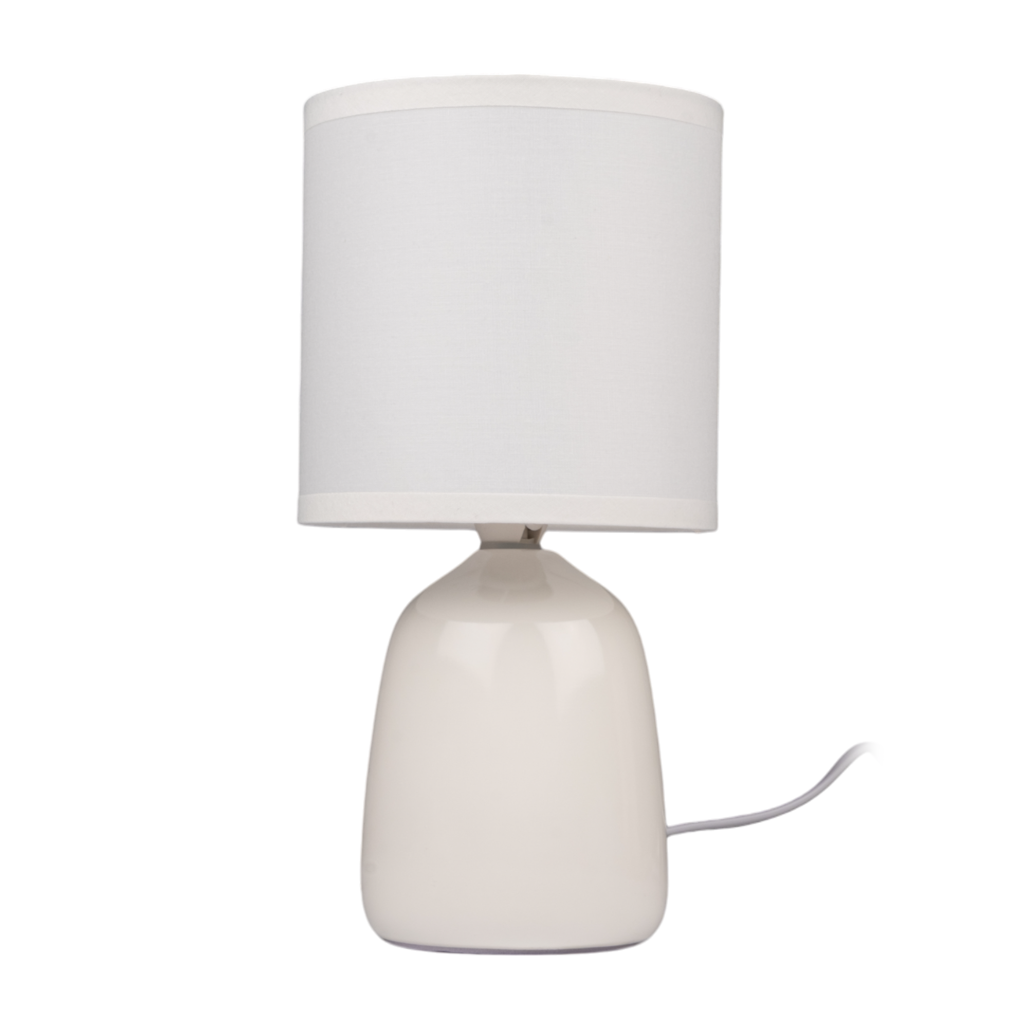 Настольный светильник с питанием от сети 220В. Материал корпуса - керамика, абажур из ткани. Цоколь Е14, может использоваться с лампами накаливания, светодиодными лампами. Длина кабеля 1,3м, выключатель на кабеле питания, цвет кабеля белый. Высота 25,5см, диаметр 13 см.