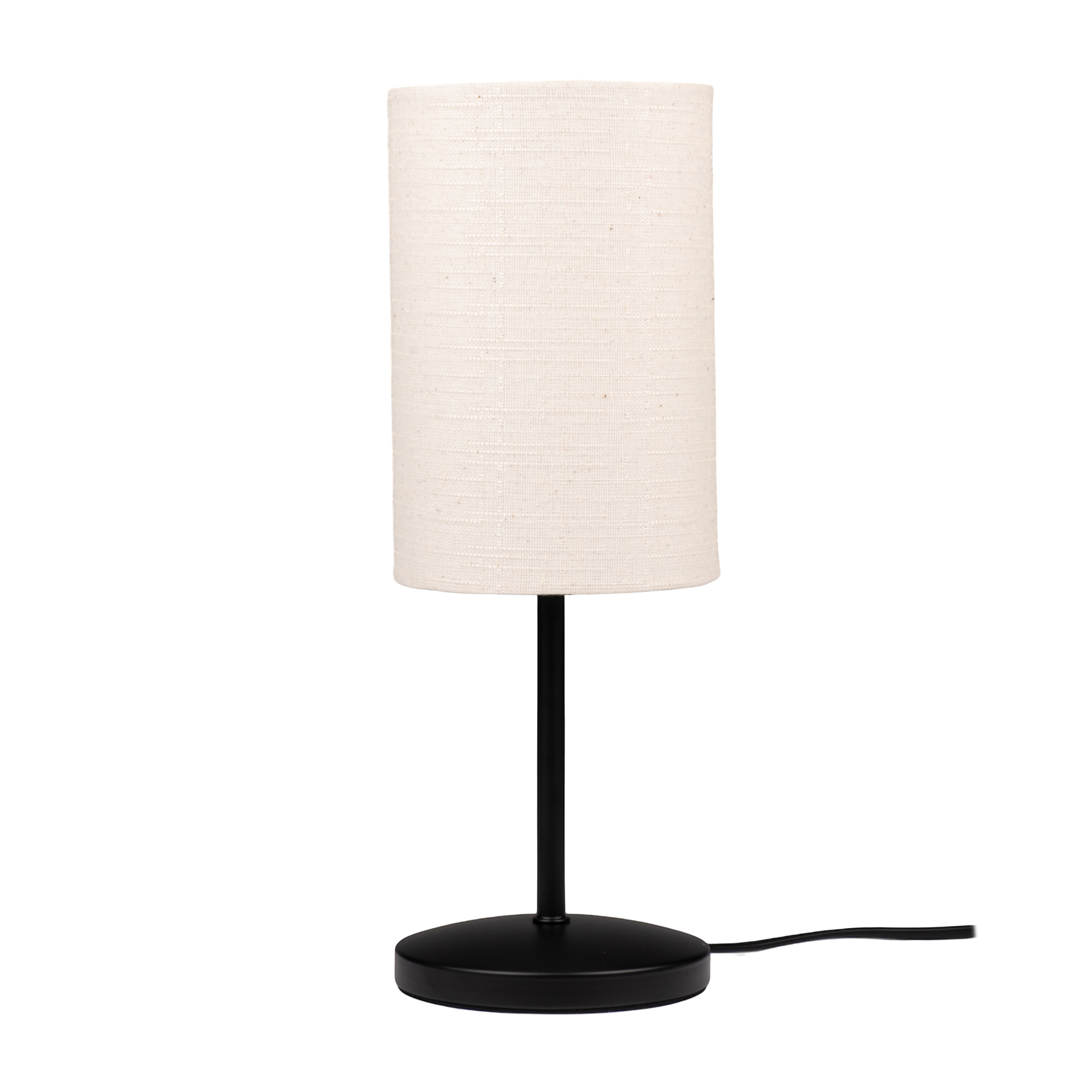 Настольный светильник с питанием от сети 220В. Материал корпуса - металл, абажур из ткани. Цоколь Е14, может использоваться с лампами накаливания, светодиодными лампами. Длина кабеля 1,3м, выключатель на кабеле питания, цвет кабеля черный. Высота 31см, диаметр 11 см.