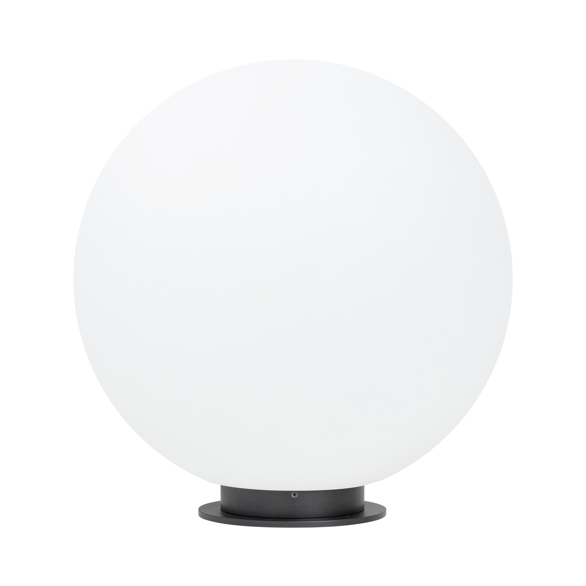 Декоративный ландшафтный светильник. Мощность 12 Вт, св. поток 1300 лм, 108 лм/Вт, теплый 3000 K, CRI>80, угол 275°, напряжение питания 24 В. Белый светопропускающий сферический рассеиватель из LLDPE (линейный полиэтилен низкой плотности), основание из алюминия серого цвета, степень защиты IP65. Размер: диаметр 400 мм, высота 400 мм. Монтаж на твердую поверхность или в грунт с помощью двух оснований пик (входят в комплект поставки). Допускается регулирование светового потока ШИМ.